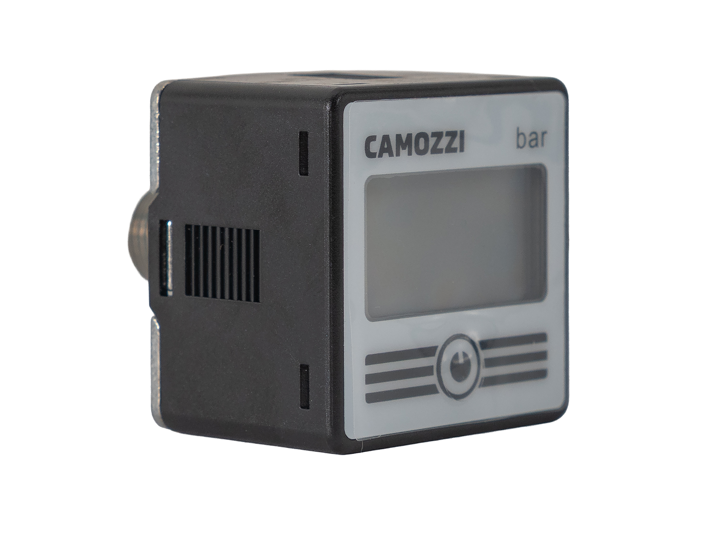 Цифровой манометр Camozzi, присоединение: G1/8", диапазон измерения давления: 0 ... 10 бар, максимальное давление: 15 бар, размер корпуса: 30x30 мм, с подсветкой, единицы измерения давления: psi, бар, kgf/cm², МПа. Класс защиты: IP65.